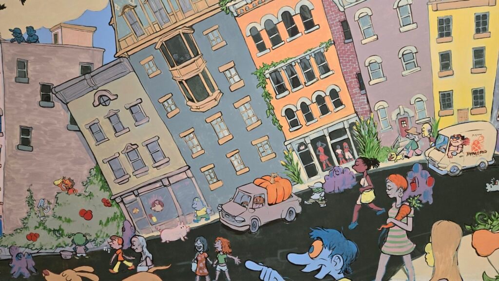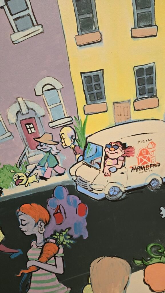 Troy Farmers Market Mural, 2025, Acrylic and Latex Paints. Approx. 30’x8′.